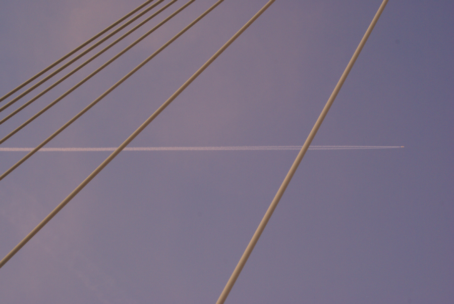 Description: Sometimes photography is all about being in the right place at the right time. In this case we were able to see an interesting angle of the bridge with a jet passing above.
